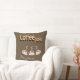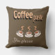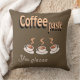 Sierkussen, getiteld Coffee Paste, een grappige Coffee Copy Paste Pun, met een kopie van drie koffiemok en een "ja graag" verzoek op de onderkant, bruine achtergrond