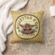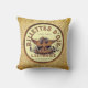 Gooi de kussen met Franse labels tegen een beige vormgeving.