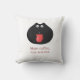 Sierkussen met leuke en grappige print met kat en koffie en tekst "meer koffie, minder zorgen".