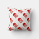 Een heerlijk Scandinavische aardbei rood en wit werpen kussen met Zweedse volkskunsten, ondersteund door een traditioneel rood en wit gingham.