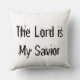 Sierkussen met Jezus en de woorden "De Heer is Mijn Savior" op de achterkant van de kussen