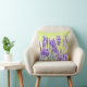 Gooi de kussen met afbeelding lavenderbloemen tegen een bleek gele achtergrond aan de voorzijde en met een lavender achtergrond op de achterkant.