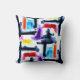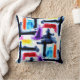 Gooi kussen met abstract kleurenblokpatroon. Helder en kleurrijk om toe te voegen aan een moderne of artistieke interieur.