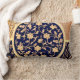 Gooi kussen met een ontwerp van meerdere prints in gedempte kleuren van beige en marineblauw.