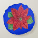Sierkussen Poinsettia - Blauwe achtergrond Rond Kussen