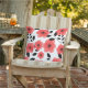 Deze kussen met een accent in de buitenlucht worden getoond met een mooie rode bloemen kunstfoto. Color White past dit object aan of koopt zoals het is. StockAfbeelding vecteezy.com