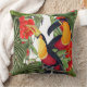 Gorgeouscollage van botanische fijne kunst van exotische tropische vogels en oerwoud bladeren, met rode Peony Flowers, staat op deze Pillow. De afbeeldingen zijn openbaar domein toe te schrijven aan verlopen auteursrecht. Collage is van mij.