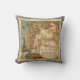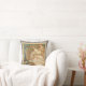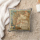 Kustkussens met vierkante katten met een tekening van een vrouw die in een stoel zit, omringd door een pauw. Kleuren omvatten blauw-beige-streekgroen wit