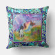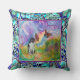 Mijn oorspronkelijke waterkleur is gedrukt op een Sierkussen met een kat die wordt bezocht door Monarch-vlinders met een fluitende zonsondergrond en een abstracte vlindergrens.