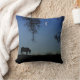 Een paard in de nachtelijke hemel met een halve maan en eikenbomen. Een blauw gekleurde kussen.