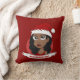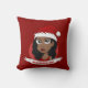 Drog kussens met een afbeelding van een mooie jonge Afrikaanse Amerikaanse vrouw met golvende haren en het pet van de kerstman; met bewerkbare tekst sjabloon, ontwerp van kerstfeestdagen met een rode achtergrond