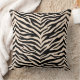 Deze werpkussens worden getoond in een exotisch dierlijk zebraletterontwerp in kleuren van zwart en licht beige.