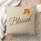 Dit kussen is afgebeeld in een natuurlijke kleur met een Thanksgiving Gezegende tekst print met een herfst bladaccent. Pas dit object aan of koop het object zoals het is ontworpen.