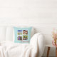 Het heldere en vrolijke gepersonaliseerde fotoontwerp met een kussen van rode_jurk bevat vier afbeelding lijsten - om je favoriete foto's te laten zien - op een blauwe achtergrond en het woord 'Love'.