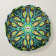 Het is een mooi kussen met het levenswiel er op. Je ziet dat het een afbeelding is van een tempeldeur of wand, het hout is herkenbaar. Het past geweldig in ons interieur: een beetje Zen, maar wel kleurig. Mooie kleuren, zoals op de afbeelding.