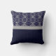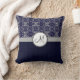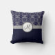 Silver Damask op Blue met Stripes en Monogram Kussen