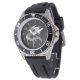 Stijlvolle zilverdraak met een chroommetalen effect op een zwarte achtergrond.