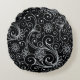 Silver Floral Swirl op Black Rond Kussen