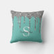 Silver Glitter Drift Light Blauwgroen Monogram Nam Kussen