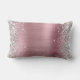 Creëer uw eigen faux sparkly zilver glitter en glanzend lichtroze ombre satin folie lumbar kussen. De glitterige grafiek is eigenschappen op de juiste en linkerzijrand. De voorzijde kenmerkt een zwart-wit fancy monogram van het calligrafische manuscript. U kunt lettertypekleur en -stijl aanpassen om uw eigen thuisdecor voor haar te creëer. Alle korrelige afbeeldingen en elementen in dit ontwerp zullen als een digitale foto worden afgedrukt.