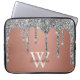 Silver Glitter Sparkle Drip Roos Gold Monogram Laptop Sleeve