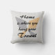 Deze stijlvolle, fashionable kussen hebben twee gestileerde minimalistische zilveren en bleke gouden trollen die elkaar kruisen, met de tekst "Thuis is waar je je handdoek ophangt" in elegant geraffineerde, cursieve zwarte letters. Het zelfde ontwerp met gekruiste trollen, maar geen tekst, wordt herhaald op de rug. Het is een origineel en creatief decor-idee voor een archeoloog, een archeologische of antropologische student, een paleontoloog, een tuinman, iemand die thuis gerenoveerd wordt, of iemand die in zijn dagelijks leven een handdoek gebruikt!