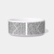 Een relatief neutraal, grijs afgedrukt faux glitterpatroon met een kunstmatig deco-geïnspireerd modern geometrisch overlappend patroon met uw katten- of hondennaam die direct op een witte keramische kom is afgedrukt.