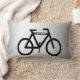 Deze decoratieve lumbale kussen hebben een abstract patroon van een zwarte fiets op een zilveren, grijze en witte metalen achtergrond.