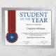 Silver Student of the Year Award Honor Certificate