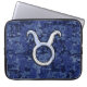 Silver Taurus Zodiac Sign Navy Blue Digital Camo Laptop Sleeve