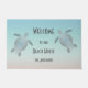 Zilveren stamschildpadden op een achtergrond van turquoise/zandstrandstijl. Met een welkomsttekst en uw familienaam.
