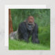 In dit opwindende afbeelding staat een krachtige zilverbackgorilla in weelderig groen gras, de blik staat vast met een solitaire boom op de achtergrond.