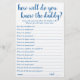 "Hoe goed ken je papa?" Wie kent de aanstaande vader het best? Eenvoudig aandenken baby shower of gender onthullen partij spel met een leuke, casual hand-lettered script. Het klassieke ontwerp bevat een moderne handgeschreven citaat typografie overlay. Voor andere kleuren of bijpassende producten, bezoek de JustFharryn Zazzle winkel, of neem contact op met de ontwerper, c/o Fharryn@yahoo.com Alle rechten voorbehouden. #bohochic #zazzlemade"