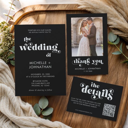 Simple Modern Minimalist Black & White WeddingOntworpen door Melissa Williams