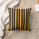 Dit werpkussen heeft eenvoudige strepen in sinaasappel, geel en zwart, ideaal voor Hallowe'en decor.