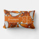 Dit coole lumbale kussen voor een basketbalspeler heeft basketballen van verschillende grootte met sinaasappel en witte panelen die elke kant op zijn gedraaid op een oranje achtergrond en een opvallend jerseynummer boven een dikke, volledige oranje kleurenstrip, waarop je de naam van de atleet ook in het wit kunt aanpassen - achterzijde van het kussen heeft een grotere versie van het basketbalpatroon - door katz_d_zynes - vergelijkbaar gestileerde handdoeken voor basketbalspelers zijn te vinden in katz_d_zynes 'Team spirit basketbalhanddoeken & waterflessen collectie >>>>>>>> https://www.zazzle.com/collections/119294281025204192