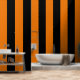 Sinaasappel Zwart Verticaal Groot Streeppatroon Behang