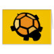 Voorkant van de kaart is versierd met een oranje en zwarte schildpad ontwerp met gele achtergrond, binnenkant van de kaart is leeg.