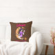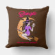 Een grappig worp kussen met een heks rijden op een bezemsteel met een schedel, en een halve maan en vleermuizen op de achtergrond. Het grappige schrijven, "Single Ready to Haunt", is perfect voor een Halloween-kerstcadeau voor een alleenstaande dame.