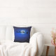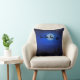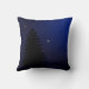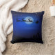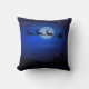 Reversibele kerstSierkussennen met een sillhouette van de Kerstman en zijn slee die door rendiertjes worden getrokken tegen een middernacht blauwe sterrenhemel met een maan die op de achtergrond schijnt. Aan de achterkant is een silhouet van een kerstboom en een zwarte en middernacht blauwe sterrenhemel. Met twee kussens kunt u beide kanten tegelijkertijd tonen.