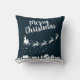 Deze elegante blauwe kerstkussen zijn voorzien van het silhouet van de kerstman met zijn herders, die boven de huizen vliegen in een spoor van sterren. De tekst, in een witte elegante doopvont, is volledig klantgericht.