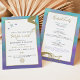 Deze bachelorette-uitnodiging en de rondweg-sjabloon hebben een zeemeermin geïnspireerde achtergrond met zeemleder en zeeschalen. Deze uitnodiging is perfect voor je tropische, strandende en oceaangeïnspireerde bachendag.