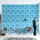 Skiing themed wallpaper with a pattern of skis, poles, goggles, and boots on a blue background. This skiing wallpaper would be great for a ski school, a winter sports travel agent, or for anyone who loves snow sports.