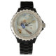 Zwart enamel horloge met skilkunst van reisposter. Kies een horlogeband.