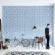 A classic, elegant damask design pattern in a soft blue and ivory.