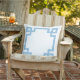 Sky Blue en Wit Griekse Key Border Buitenkussen