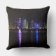 Gooi een kussen met de verlichte wolkenkrabbers in de skyline van het commerciële centrum van Doha, de hoofdstad van het Arabische Golfland Qatar 's nachts.