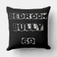 Speelse, provocerende slogan kussen met "SLAAPKAMER BULLY 69" in ruwe, met de hand getekende blokletters op een diepe zwarte achtergrond. Hoogcontrast zwart-wit, moderne grafische stijl. Leuk accent voor mannen grotten, vrijgezellenkussens, slaapzalen of brutale koppelgeschenken; paren gemakkelijk met minimalistische of industriële inrichting.