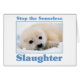 Een close-up van een Harp zeehond met de woorden Stop de Senseless Slaughter omheen. Dit is totaal zinloos doden, het moet stoppen. Show uw steun, ga erbij betrokken en stop deze praktijk.