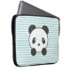Een blauwe en witte gestreepte laptophoes met een schattige panda.